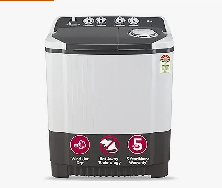 LG 7 Kg 5 Star Wind Jet Dry Semi-Automatic Top Loading Washing Machine (P7020NGAZ, Dark Gray, Rat Away Feature)
